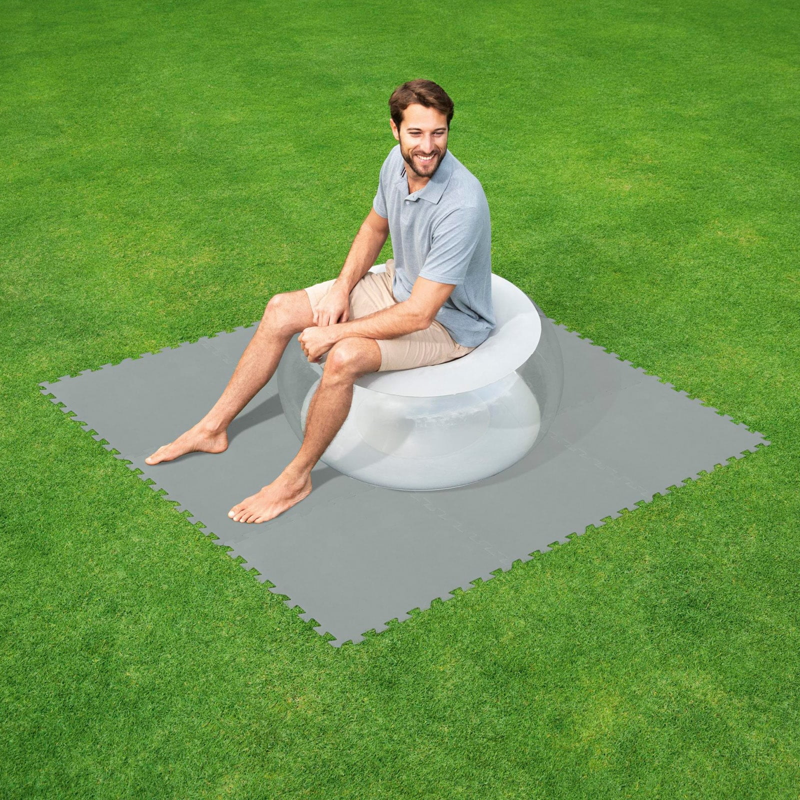 Su montaje es sencillo y flexible: puedes colocar las piezas de forma modular según la forma o tamaño que necesites cubrir, adaptándose a piscinas de diferentes dimensiones u otros elementos de exterior como duchas, spas hinchables o zonas de juego acuáticas.