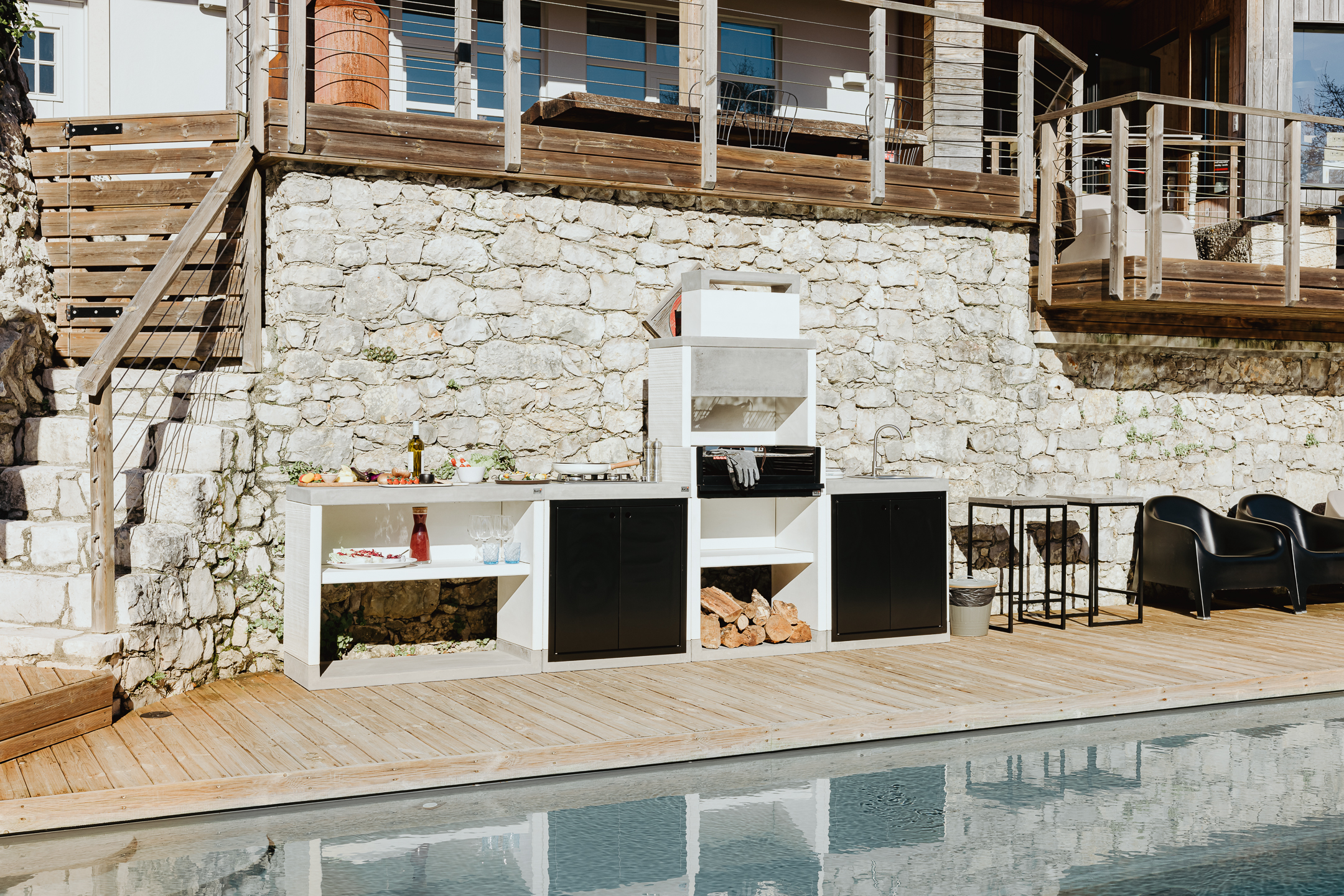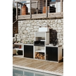 Extractor de humo en hormigón blanco liso. Compatibilidad garantizada con las barbacoas PLAN/VENIT, para un disfrute culinario sin interrupciones. Diseñado para una integración perfecta en tu espacio exterior, este extractor elimina el humo y los olores, permitiéndote disfrutar al máximo de tus reuniones y celebraciones.