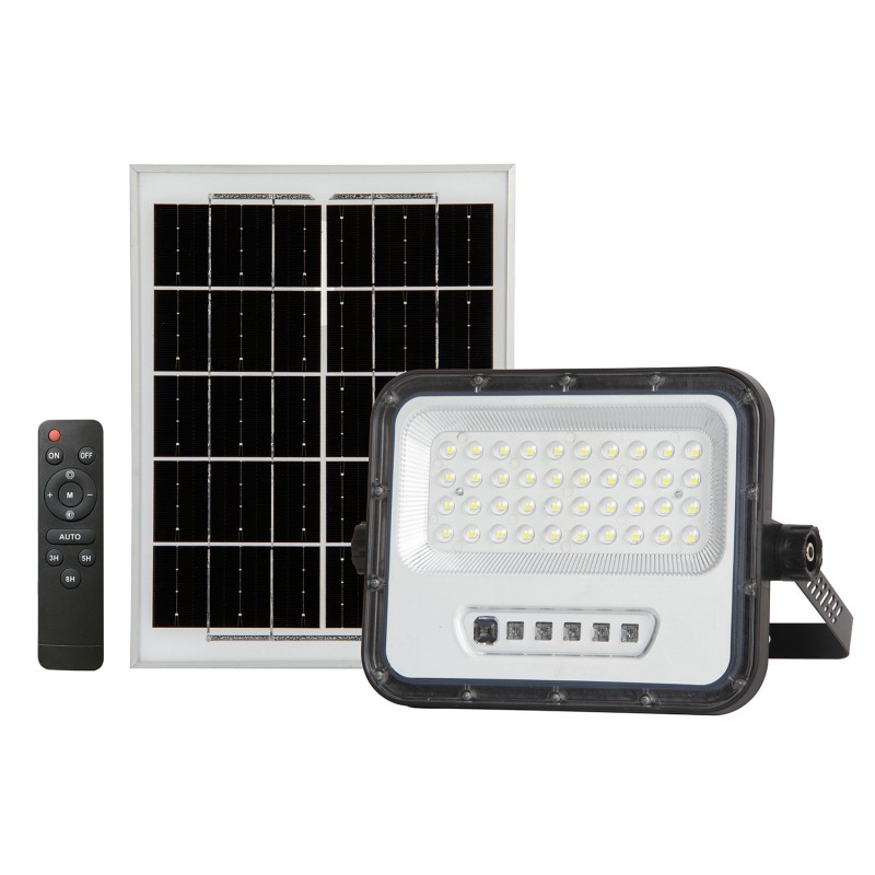 Proyector LED solar 100W 650lms con mando 40leds panel separado 6500K