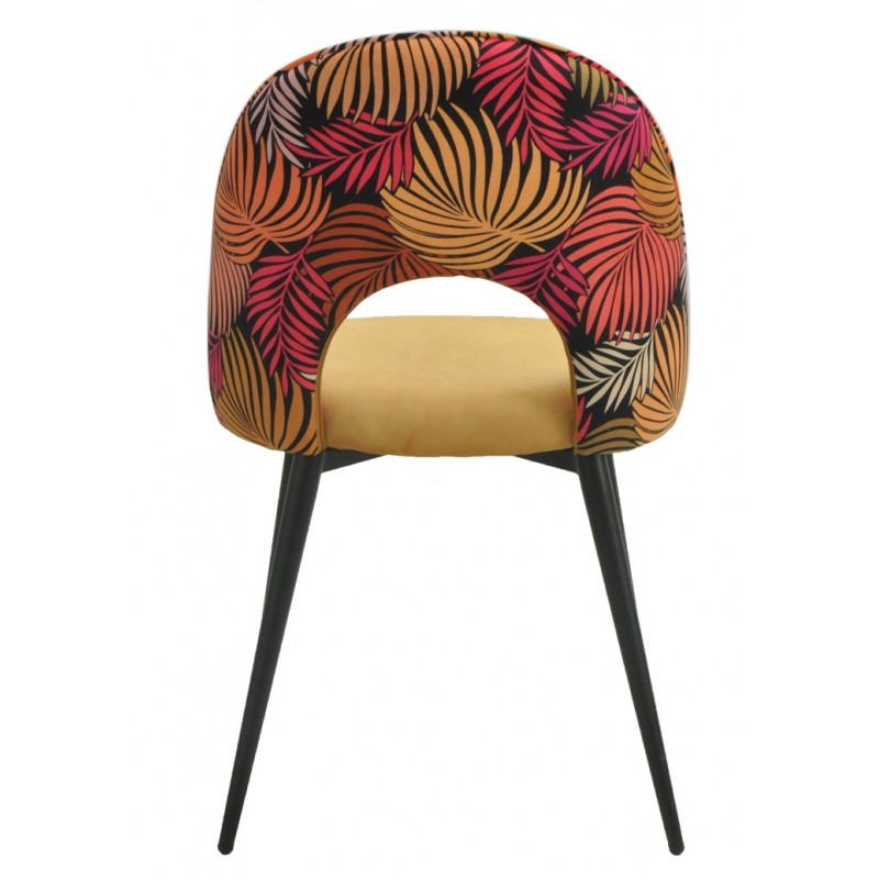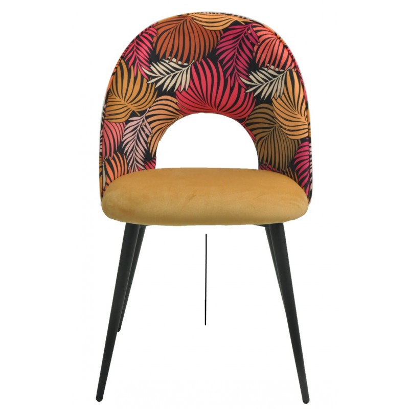 Silla ORQUIDEA, metal, tapizado velvet amarillo con respaldo floral a juego