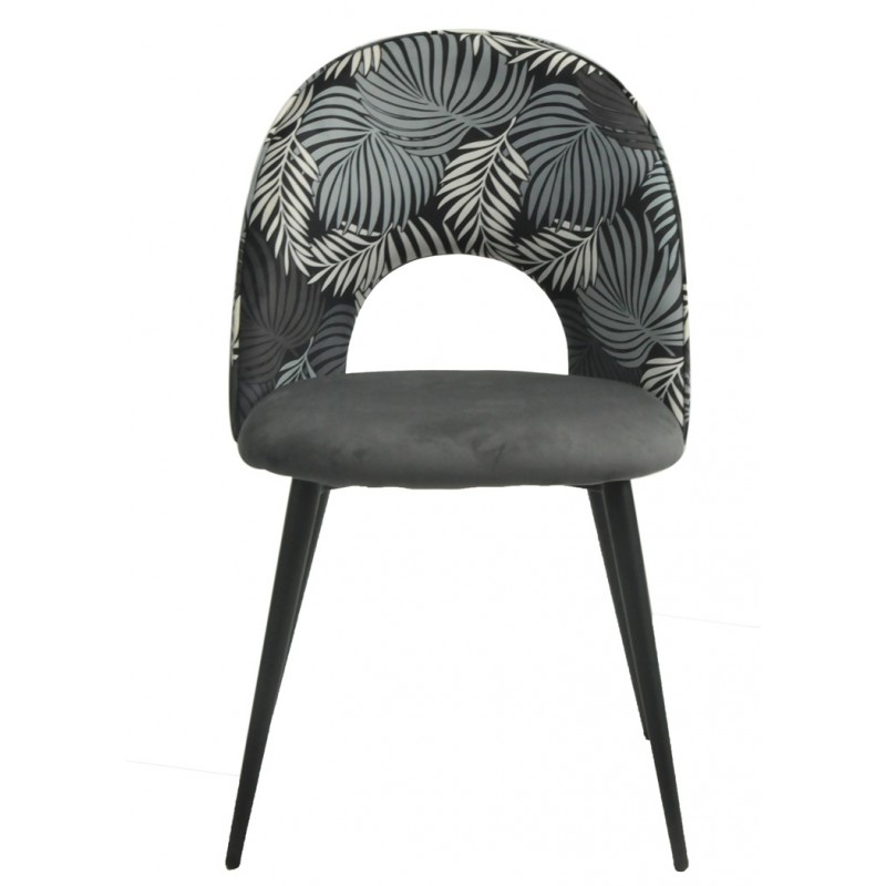 Silla ORQUIDEA, metal, tapizado velvet gris con respaldo floral a juego