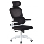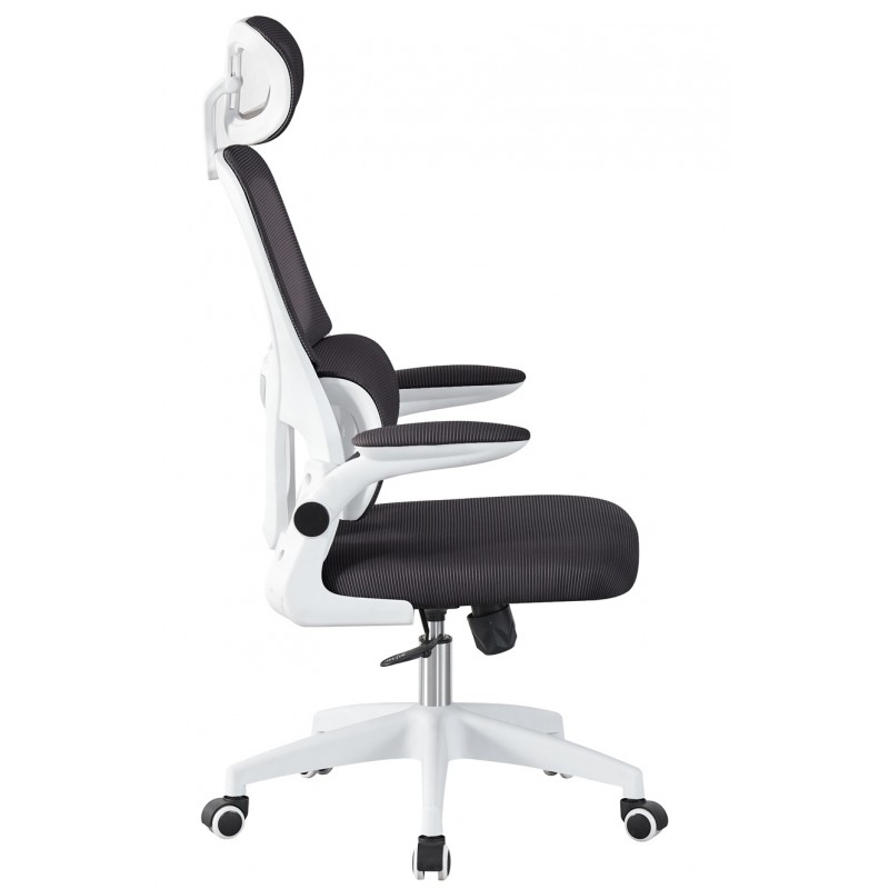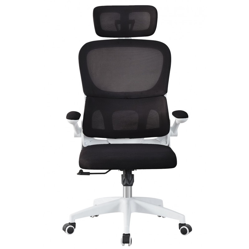 Sillón de oficina BERNAY, alto, blanco, malla y asiento negro