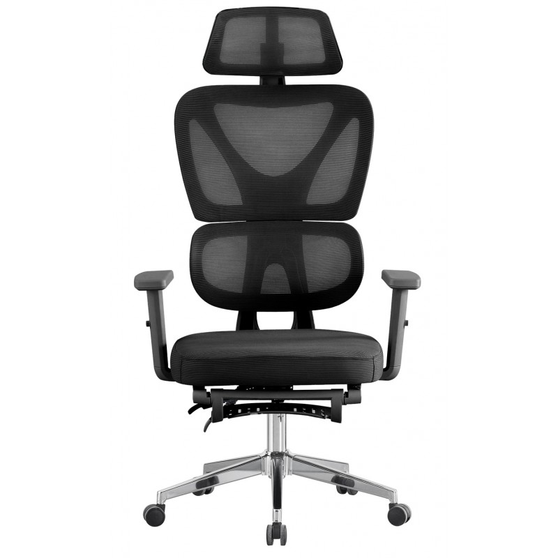 Sillón de oficina DURBUY, alto, ergonómico, negro, malla y asiento negro