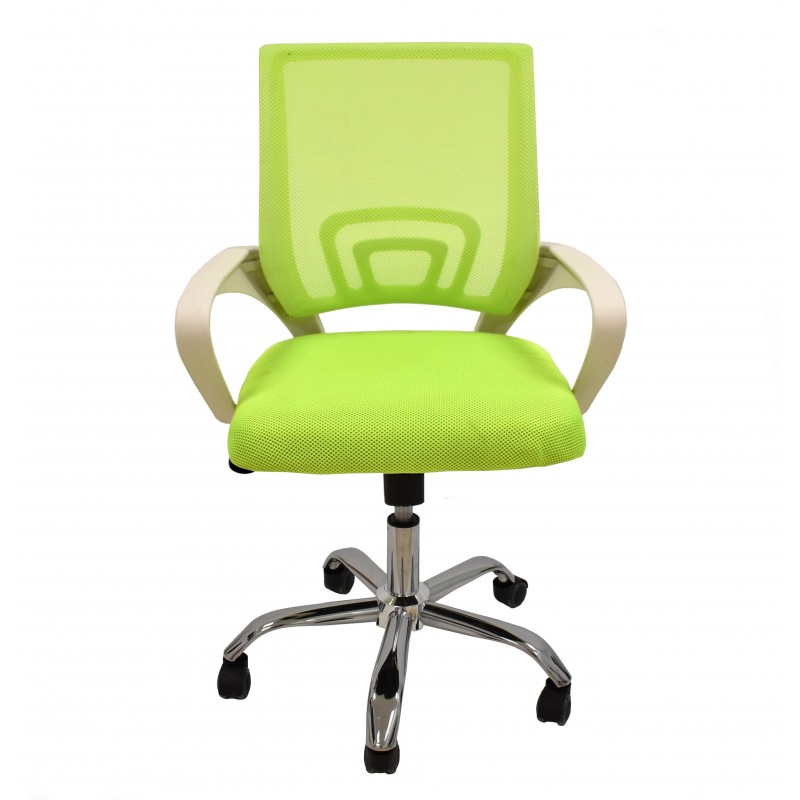 Sillón de oficina FISS NEW, blanco, regulación de altura, basculante, malla y tejido verde