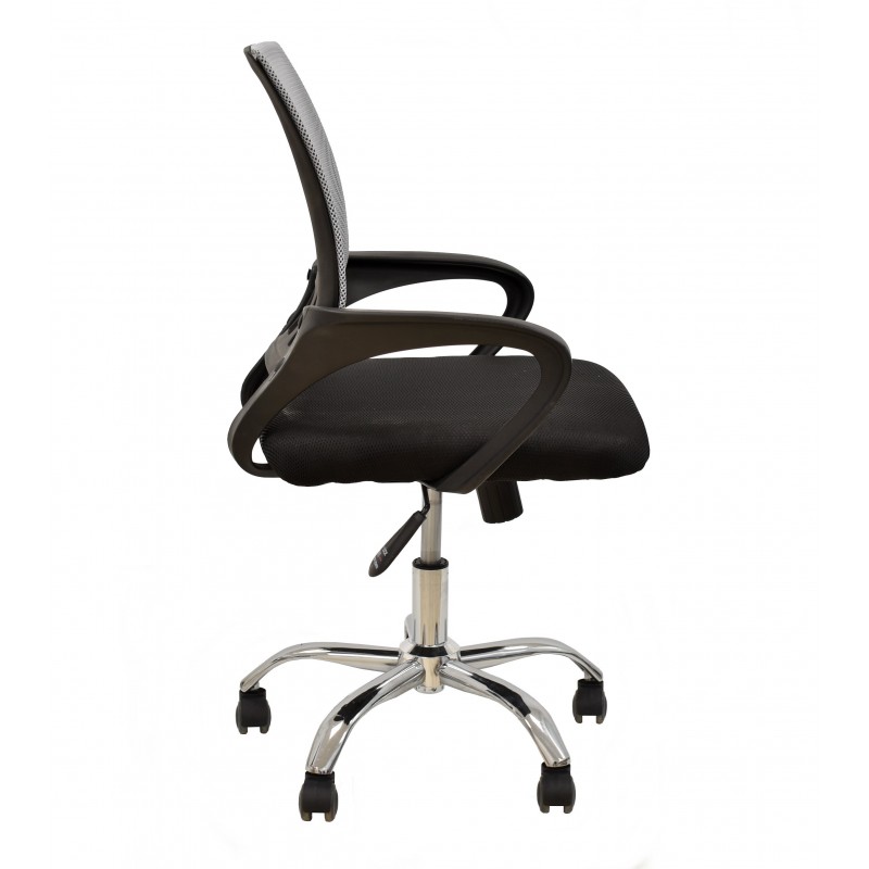 Sillón de oficina FISS NEW (M), negro, basculante, malla gris, tejido negro