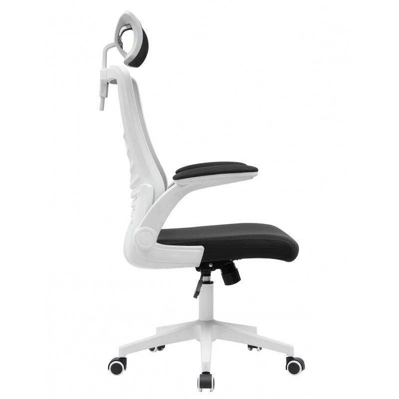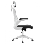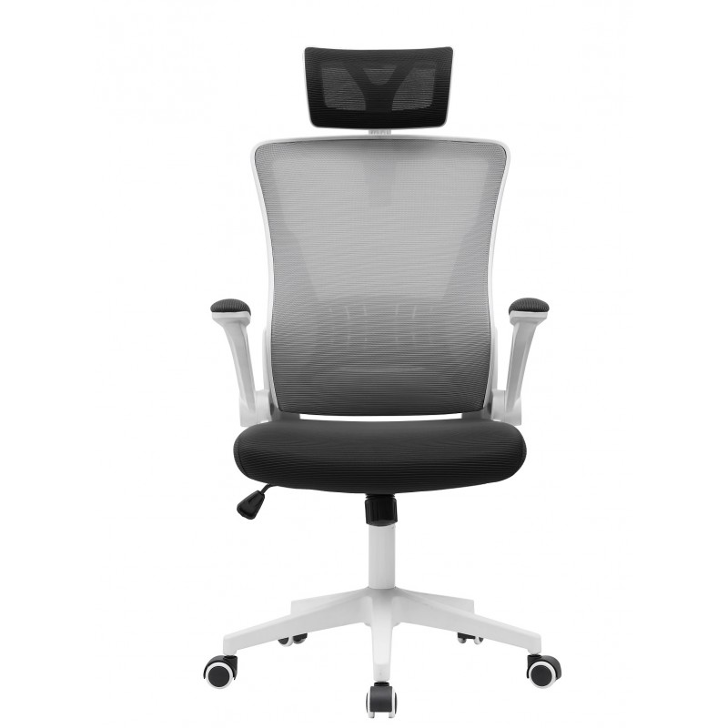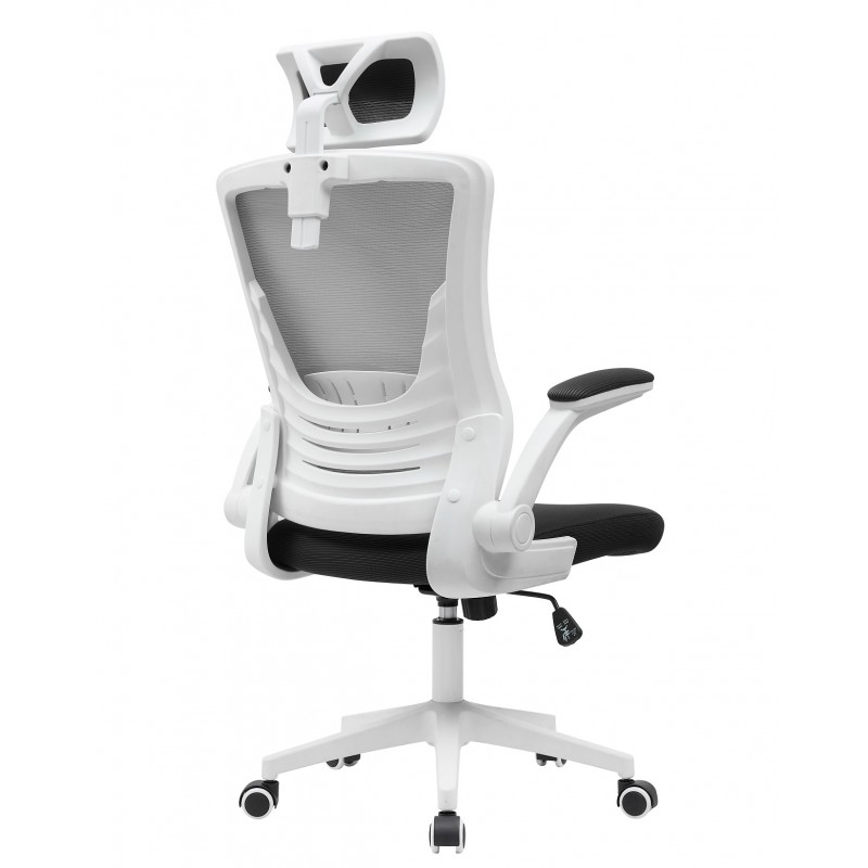 Sillón de oficina LAURO, alto, blanco, malla gris, asiento negro