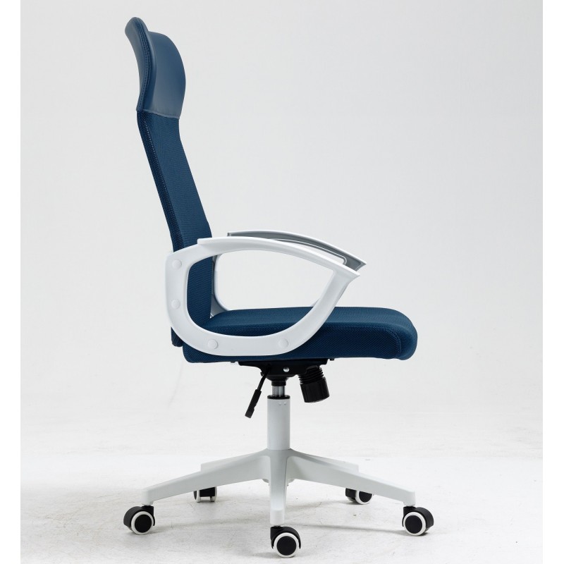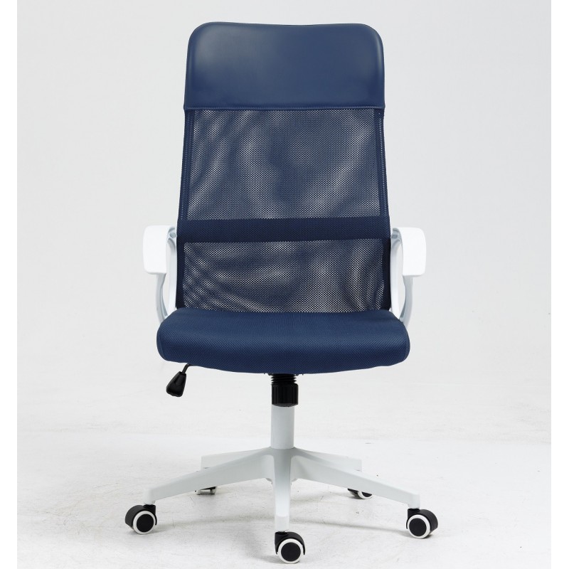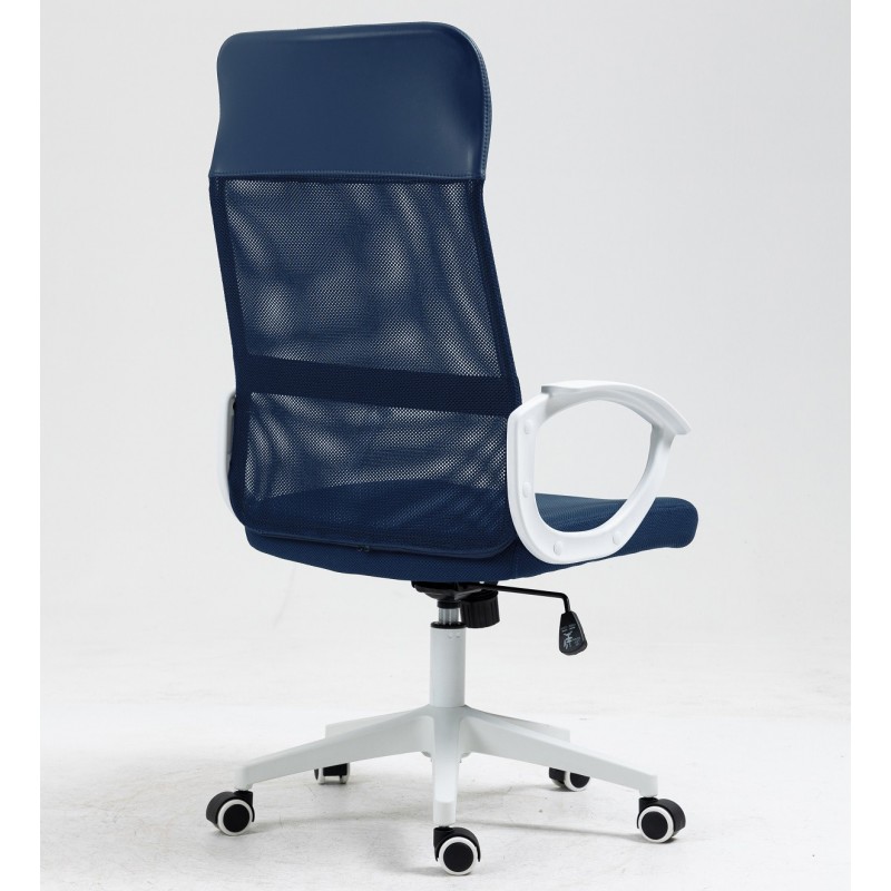 Sillón de oficina VERTON, blanco, malla y asiento azul oscuro