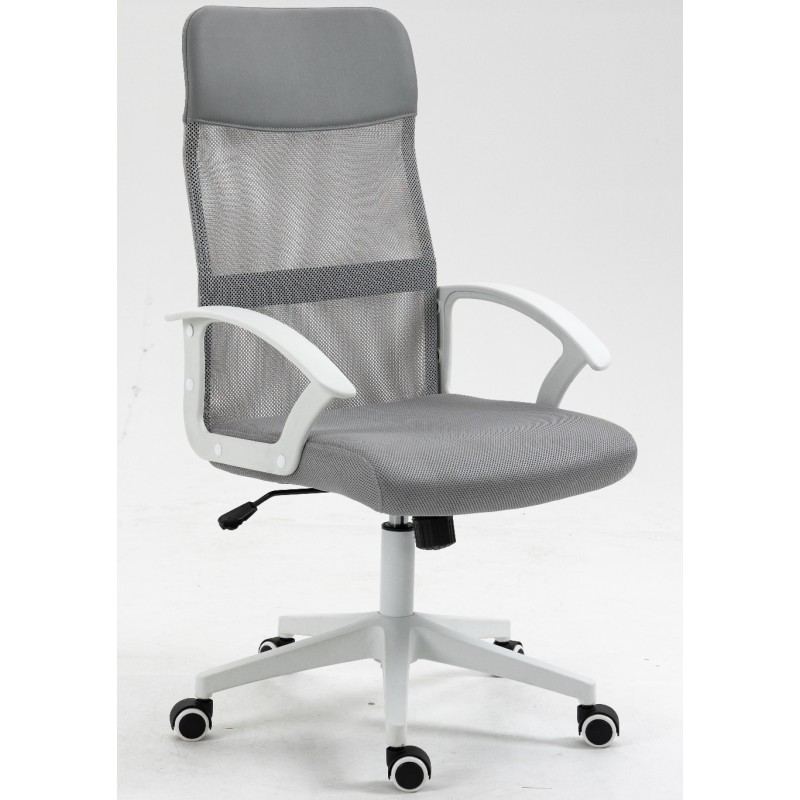 Tapizado del respaldo en malla de color gris, cabezal en similpiel gris y asiento en tejido acrílico gris: Ventilación adecuada y un toque de estilo que se adapta a cualquier ambiente.