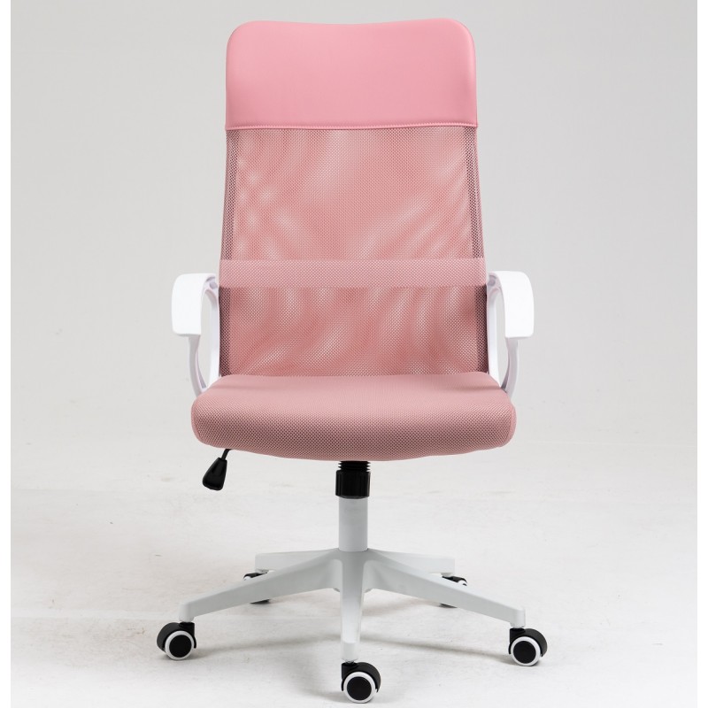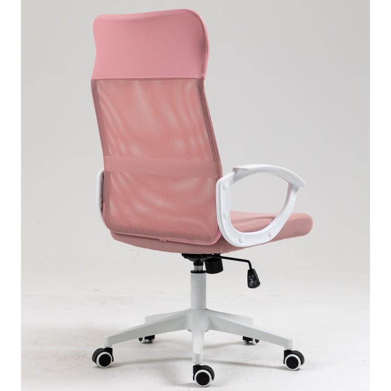 Sillón de oficina VERTON, blanco, malla y asiento rosa