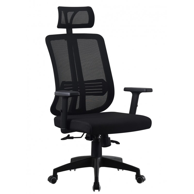 Sillón de oficina VITRÉ, alto, negro, malla y asiento negro