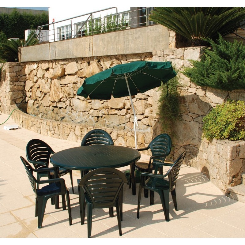 El sillón de resina monoblock apilable en verde es una opción inteligente para aquellos que buscan confort, estética y eficiencia en el uso del espacio.