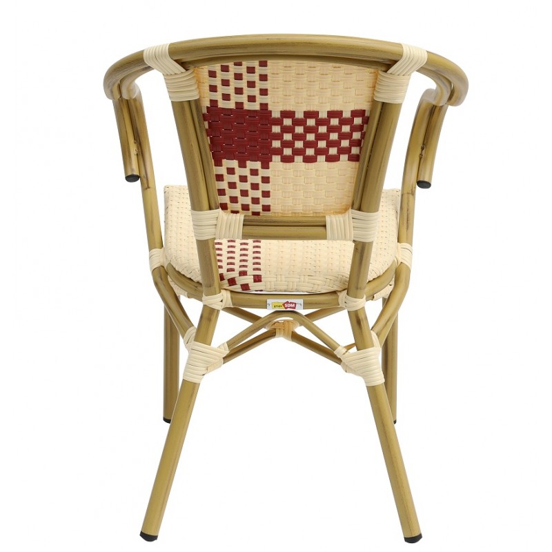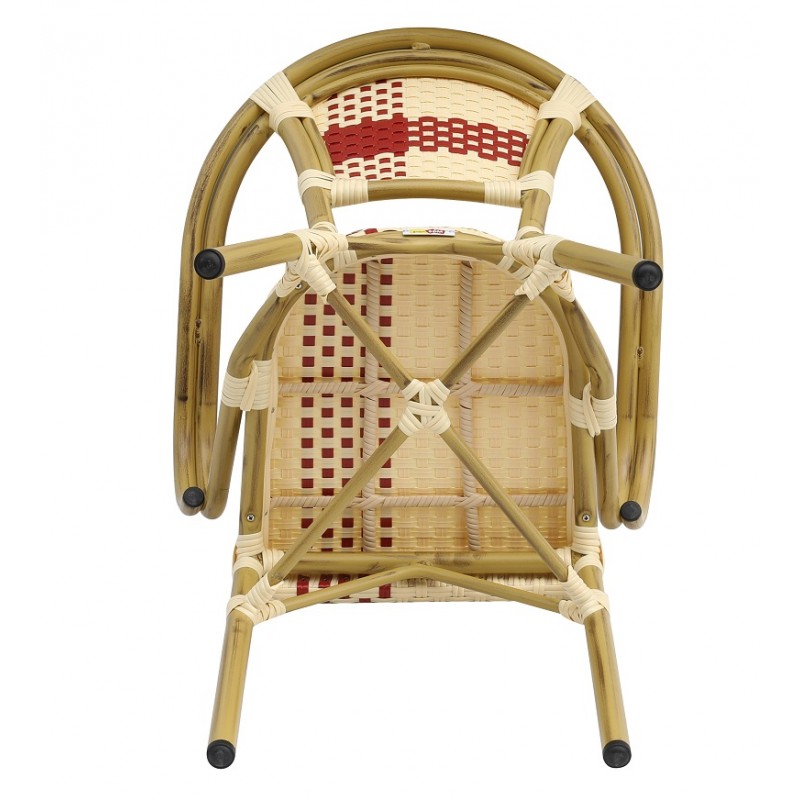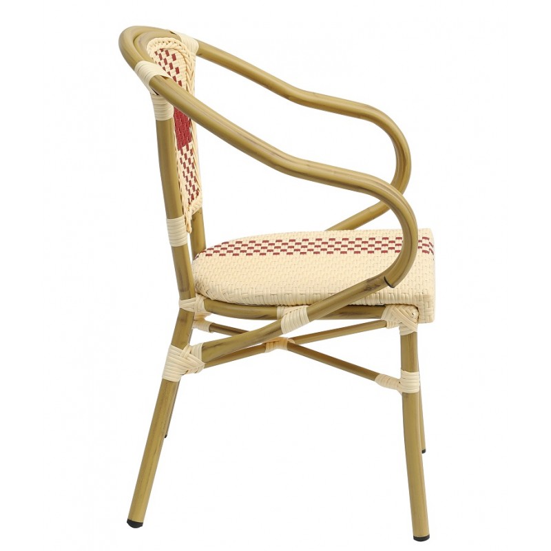 Sillón GARNIER, apilable, aluminio, ratán beige y rojo