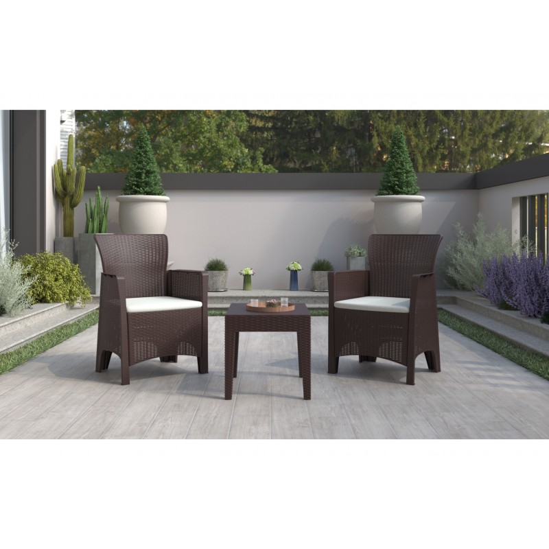 Sillón ILEÓN, polipropileno marrón chocolate, cojín beige