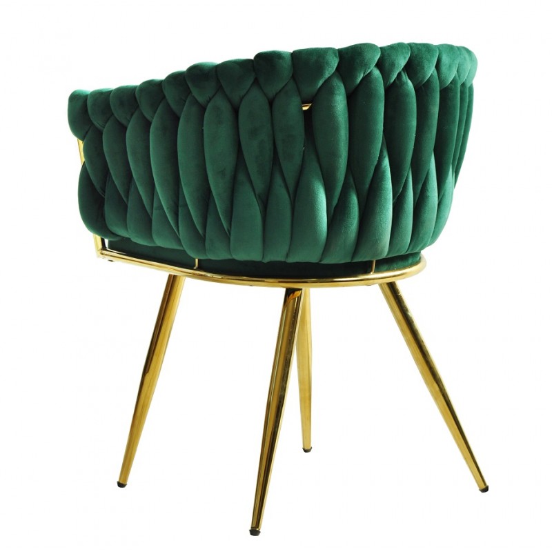 Confort y estilo: El asiento y respaldo están tapizados en tejido velvet verde oscuro que combina un alto nivel de comodidad con un look moderno y elegante.