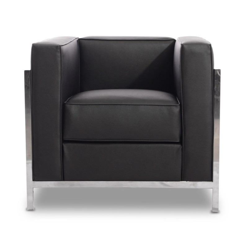 Sillón LOBBY, acero inoxidable, similpiel negra