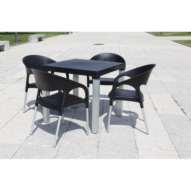 El sillón MOON es una opción de diseño moderna y funcional para cualquier espacio interior o exterior. Su carcasa de polipropileno de color negro es resistente al sol gracias a su tratamiento anti rayos UV. Las patas de aluminio anodizado garantizan un acabado duradero y estéticamente atractivo.
