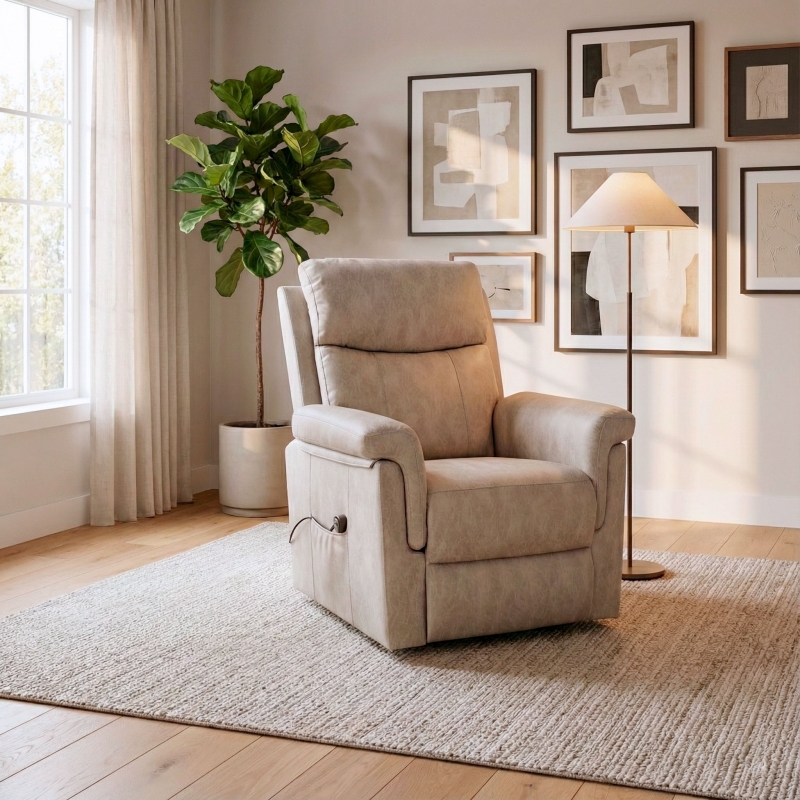 El acolchado del asiento, con espuma de 28 kg/m³, y el relleno de fibra virgen en respaldo y brazos, ofrecen una sensación envolvente y suave. Está equipado con un mecanismo Power Lift, ideal para ayudar al usuario a levantarse de la butaca con facilidad, haciendo de este sillón una excelente opción para personas con movilidad reducida o que buscan un extra de asistencia.