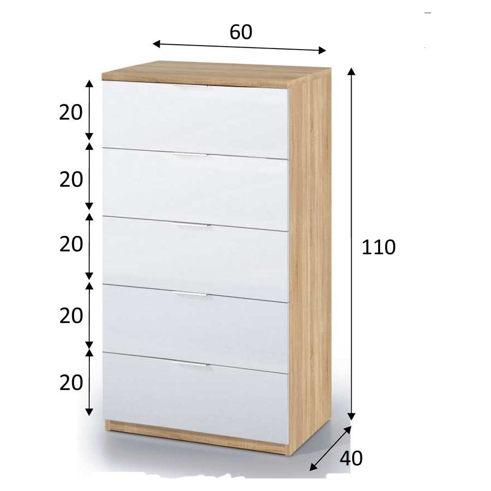 Sinfonier 5 cajones roble Canadian – Blanco Artík 60 x 110 x 40 cm