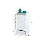Con cinco amplios cajones, el sinfonier Tekkan te ofrece un espacio donde poder organizar y guardar tus prendas, accesorios y objetos personales. Su diseño en color blanco Artik combinado con cemento le confiere un aspecto moderno y sofisticado que se integra perfectamente en cualquier decoración.