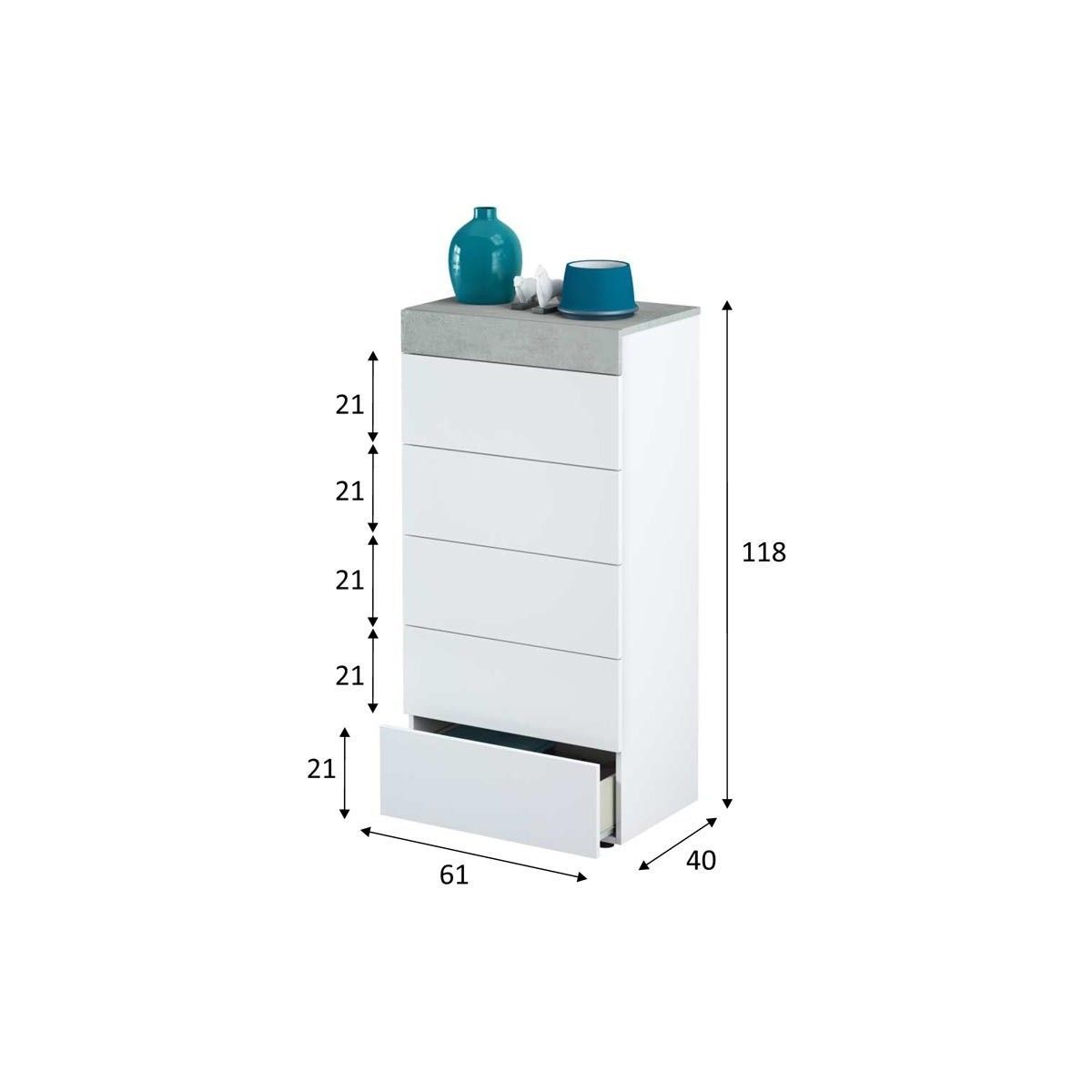 Sinfonier blanco Artik Tekkan cemento 5 cajones 61 x 118 x 40 cm
