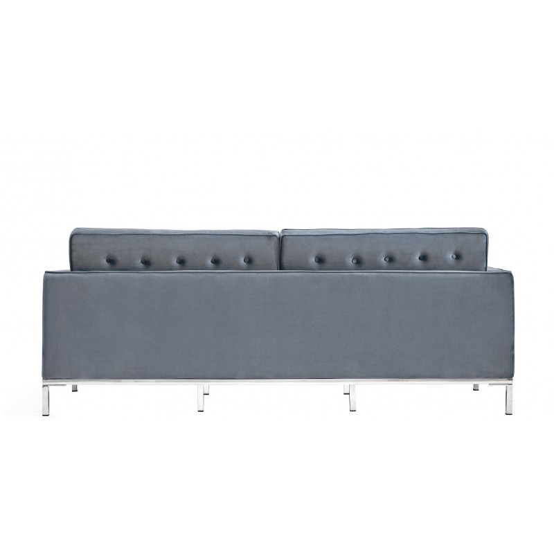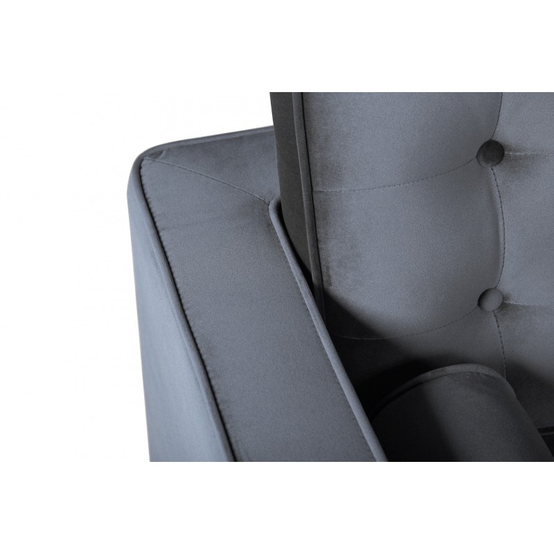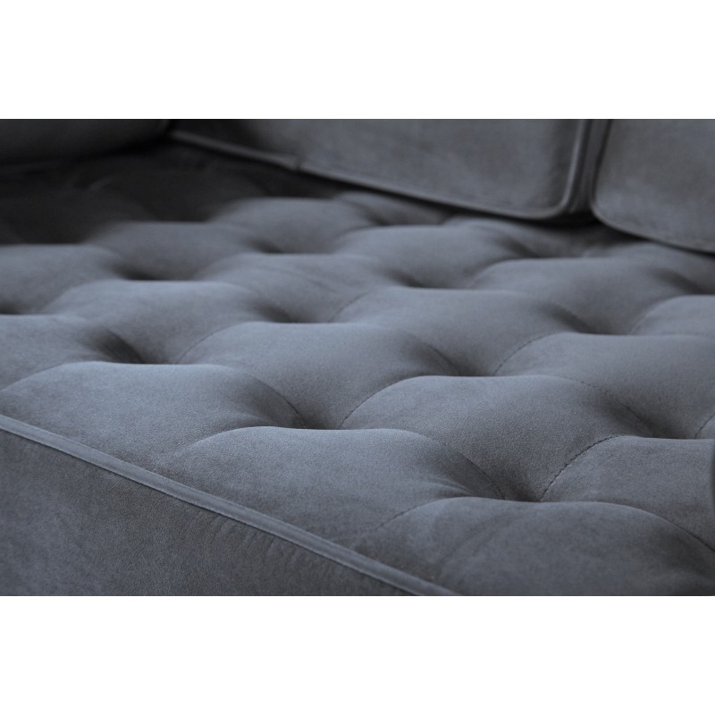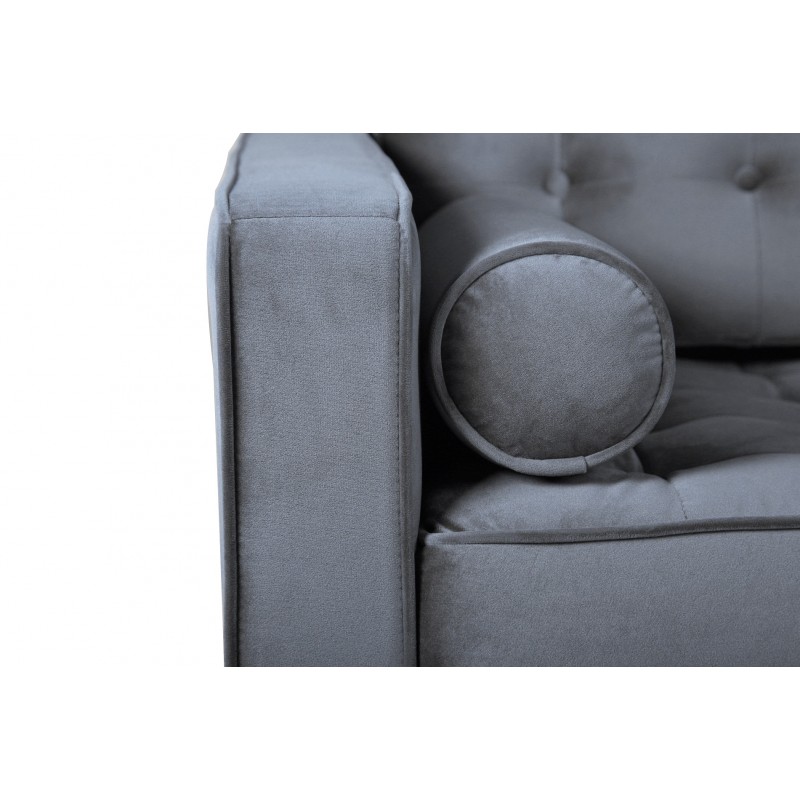 Tapizado en tejido velvet gris: Con su textura sedosa y color neutro, este sofá se fusiona fácilmente con cualquier decoración.