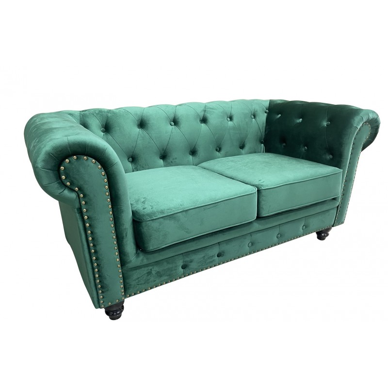 Sofá CHESTER PREMIUM, 2 plazas, tapizado velvet esmeralda