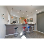 Columna cromada y reposapiés: Agrega un toque moderno al espacio mientras proporciona comodidad al pie del taburete.