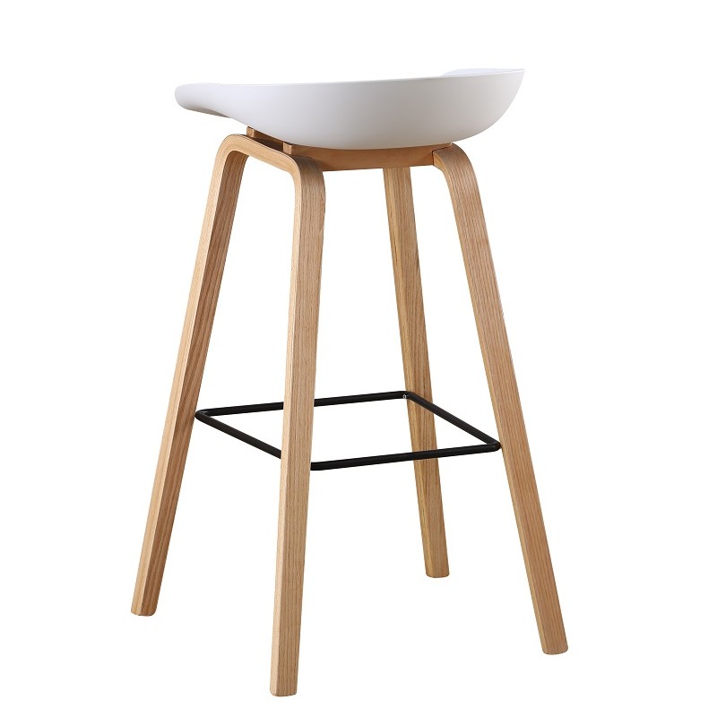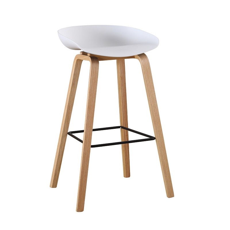 Taburete AWAK (TO), madera curvada, asiento polipropileno blanco