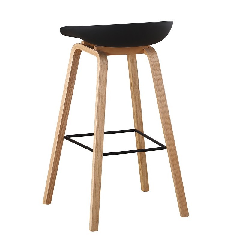 Taburete AWAK (TO), madera curvada, asiento polipropileno negro
