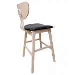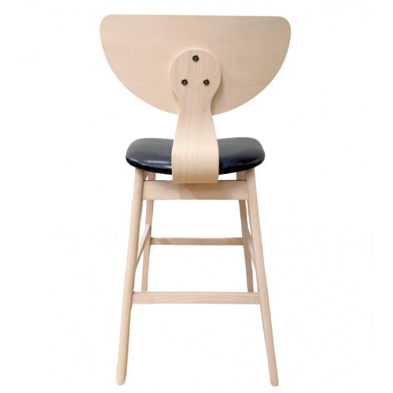 Taburete DUBLIN, madera de hevea, natural, similpiel negra