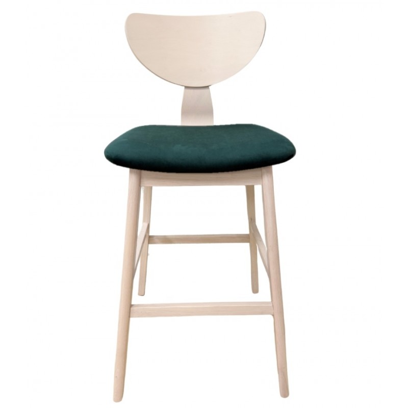 Taburete DUBLIN, madera de hevea, natural, velvet verde oscuro