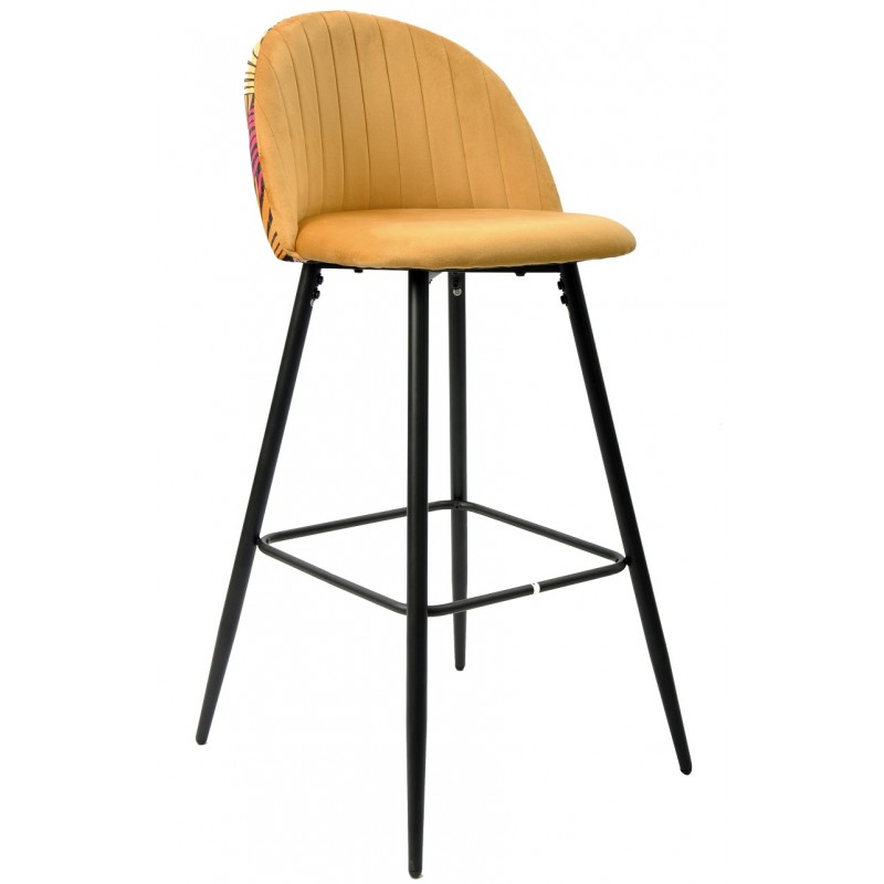 Taburete FLORAL, metal, tapizado velvet amarillo con trasera floral a juego