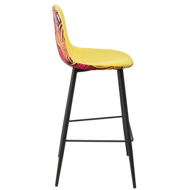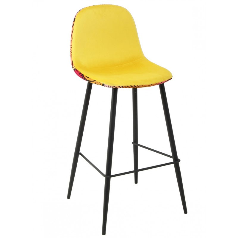 Taburete HORUS NEW, metal, tapizado velvet amarillo con trasera floral a juego