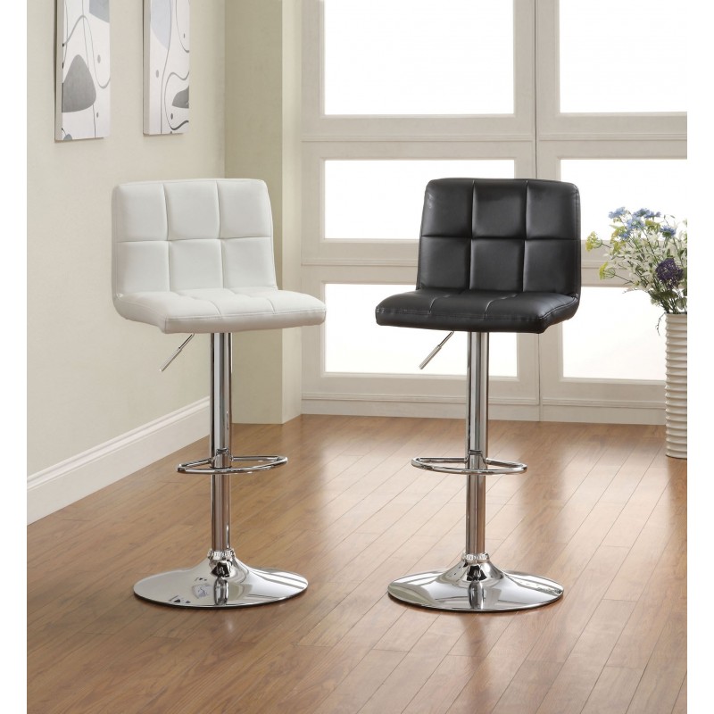 Estabilidad y confort: Los reposapiés y base cromada proporcionan equilibrio y estabilidad, mientras que el asiento tapizado en similpiel negro ofrece una comodidad inigualable.