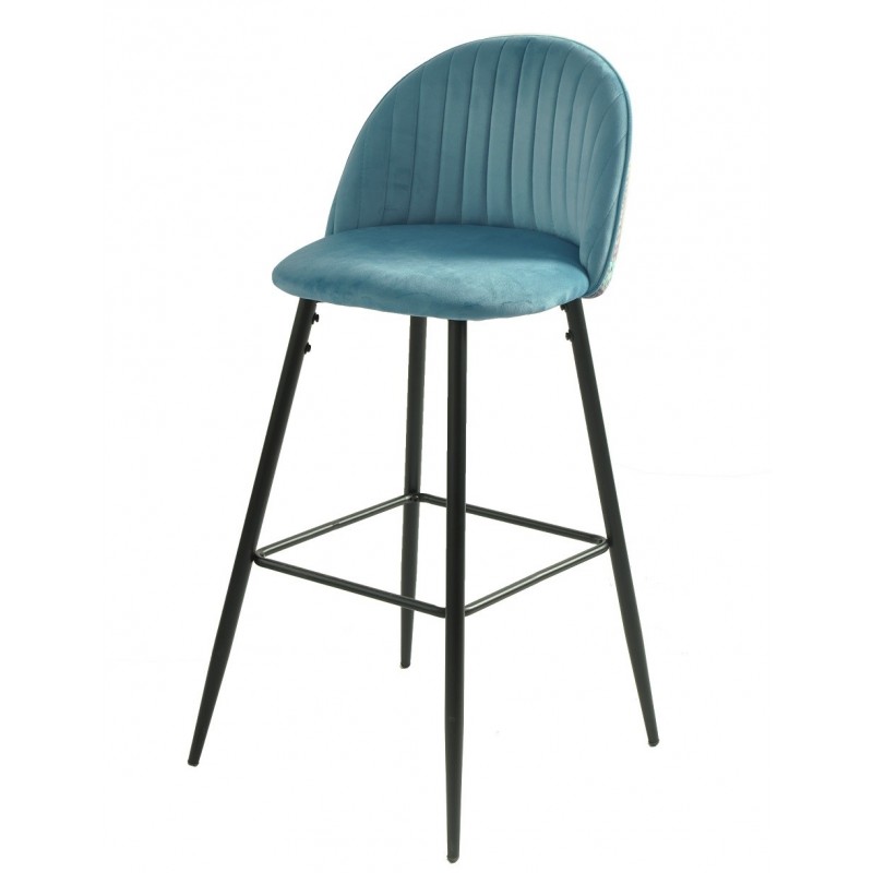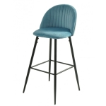 Taburete PALM SKY BLUE, metal, tapizado velvet azul con trasera palm