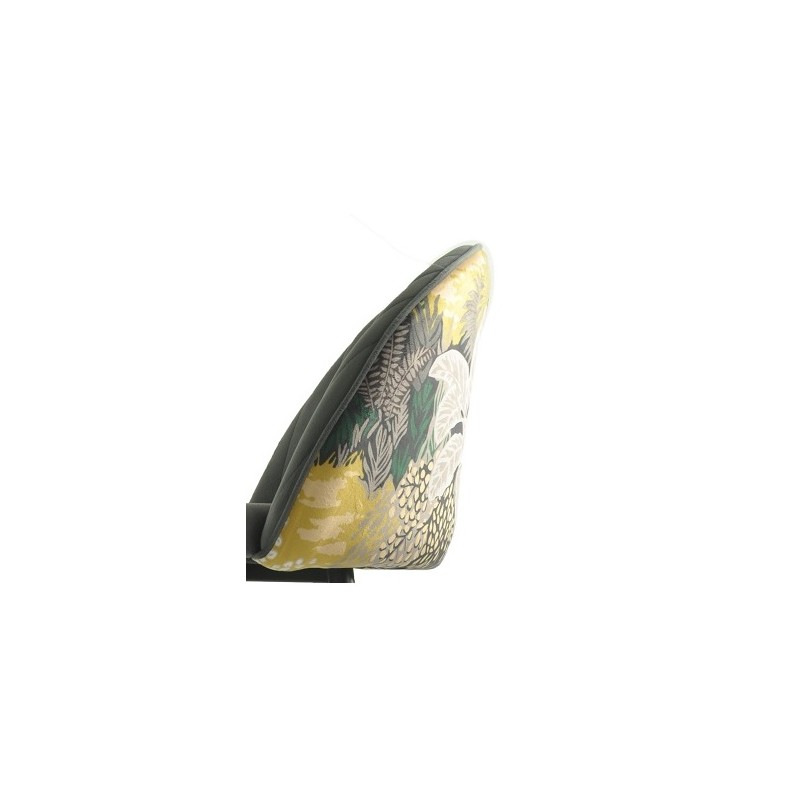 Tapizado de Alta Calidad: El asiento y respaldo están tapizados en terciopelo azul premium, ofreciendo comodidad y estilo. La trasera del respaldo está hecha de un tejido decorativo palm que añade un toque de textura única.