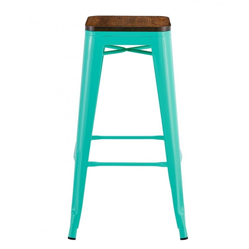 Taburete TOL EK WOOD, acero, verde agua, asiento madera