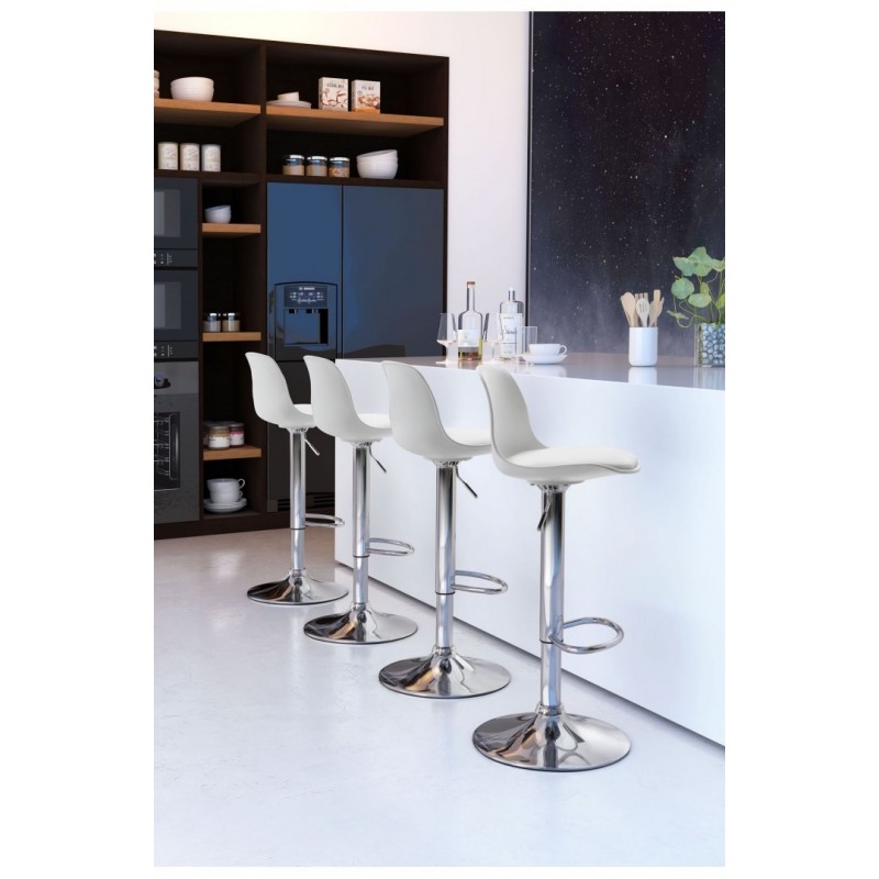 Taburete TOW RG, cromado, polipropileno y cojín blanco