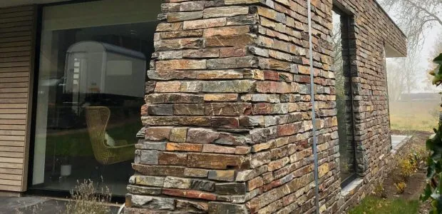 Fachadas y Muros Exteriores: Ideal para transformar espacios al aire libre con un toque rústico y contemporáneo.