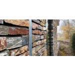 El taco de pizarra multicolor premontado es la elección ideal para quienes buscan un revestimiento natural con personalidad y carácter. Sus tonalidades oscuras y matices únicos lo convierten en una solución perfecta para espacios iluminados, creando atractivos contrastes con materiales claros y aportando un toque rústico y sofisticado.