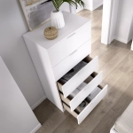 - Tiradores Discretos y Elegantes: Los tiradores de pestaña de aluminio en blanco se integran a la perfección con el diseño, facilitando la apertura y cierre de los cajones.